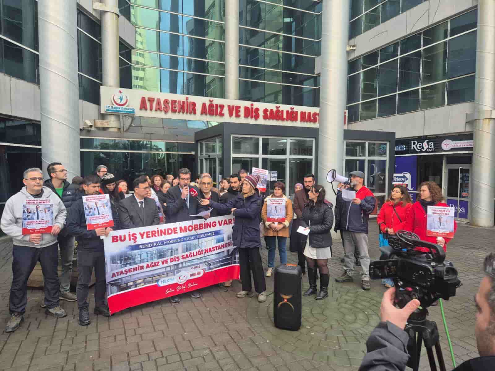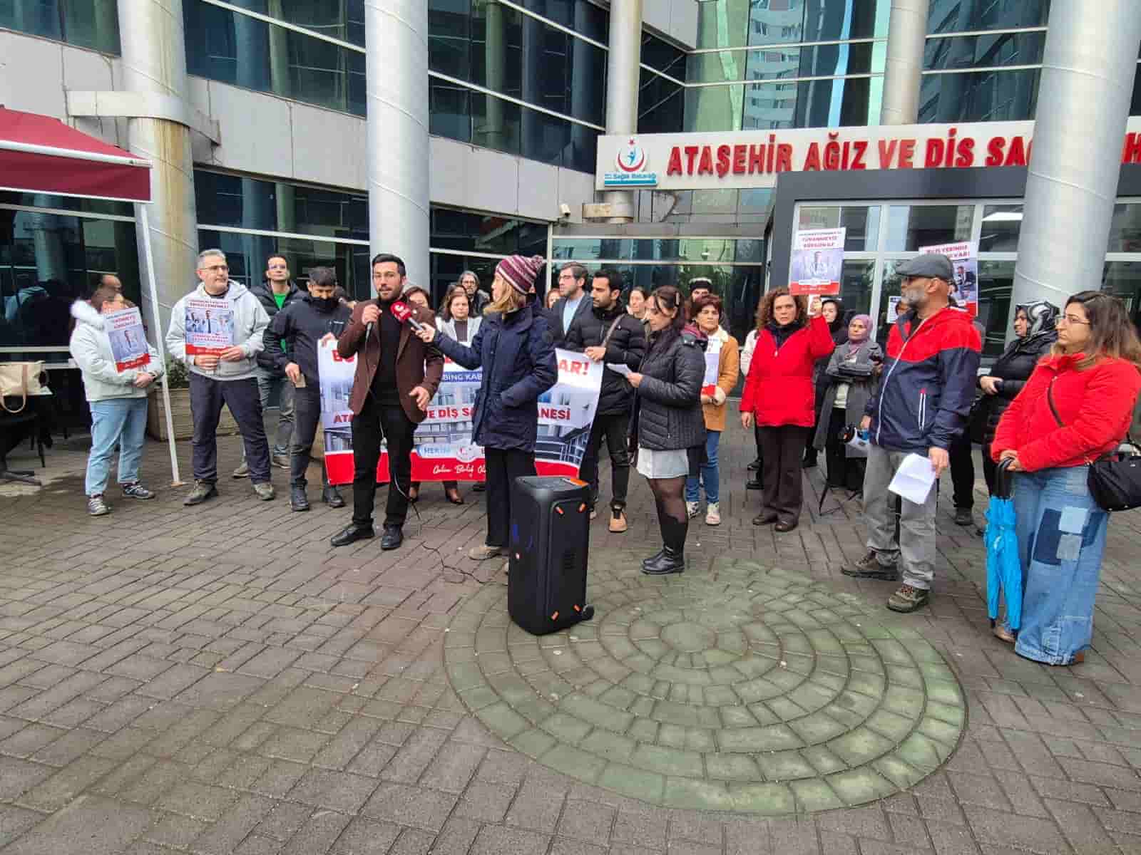 İstanbul Ataşehir Ağız ve Diş Sağlığı Hastanesi önünde düzenlenen basın açıklamasına sağlık iş kolundaki sendikalar, Hekim Birliği Genel Başkan Yardımcısı Op. Dr. Çağlar Yıldırım ve Hekim Birliği İstanbul Şube Yönetimi’nin katılımıyla gerçekleşti. Hekim Birliği yöneticileri tarafından yapılan açıklamada şu ifadelere yer verildi, “Bugün burada; emeğiyle, liyakatiyle ve onuruyla görev yapan hekimlerin, sistematik bir baskı ve yıldırma politikasıyla karşı karşıya kalmasına “DUR” demek için toplandık. Hekim Birliği İstanbul Şube Yönetim Kurulu üyemiz Dt. Janat Düzgün, son dönemde ardı arkası kesilmeyen, hiçbir hukuki dayanağı olmayan mesnetsiz soruşturmaların ve nihayetinde “cezalandırma” amacı taşıyan usulsüz bir tayin kararının hedefi olmuştur”