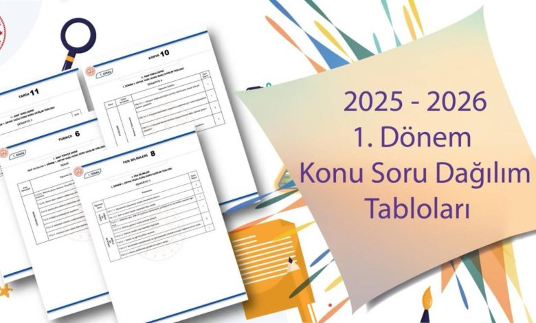 9 Eylül 2023’te yayımlanarak yürürlüğe giren Ölçme ve Değerlendirme Yönetmeliği’ne göre ülke, il, ilçe ve okul genelinde yapılacak ortak yazılı sınavlar, il sınıf/alan zümrelerince hazırlanacak konu soru dağılım tabloları çerçevesinde uygulanacak. Bu kapsamda, 2025-2026 eğitim öğretim yılı dönem başında il sınıf/alan zümreleri tarafından Ölçme Değerlendirme Merkezi Müdürlüğünün görüşü alınarak konu soru dağılım tablolarına örnek oluşturması açısından temel eğitim ve ortaöğretimdeki farklı branş ve sınıf düzeylerinde “konu soru dağılım tabloları” yayımlandı. Okul geneli yazılı sınavlarda hangi senaryonun kullanılacağı, eğitim kurumu sınıf/alan zümresi tarafından belirlenecek ve tüm sınavlar belirlenen konu soru dağılım tablosuna göre hazırlanacak. Konu soru dağılım tablolarına ulaşmak için tıklayınız.